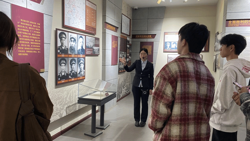 中原军区旧址内的中原突围纪念馆,位于孝感市大悟县宣化店镇。1946年6月26日,震惊中外的“中原突围”战役在此打响,揭开了全国解放战争的序幕。走进纪念馆,一幅巨大的浮雕率先映入眼帘,浮雕中战士们神情坚毅、奋勇向前,仿佛在静静诉说那段浴血奋战的峥嵘历史。在讲解员的引导下,新生们有序参观“湖北会馆”等展区,认真聆听革命先辈的奋斗故事。参观过程中,同学们纷纷表示,作为新时代青年学生,要铭记历史、珍惜当下和平生活,从革命先辈的牺牲奉献中汲取成长力量;通过本次研学,大家深刻认识到中原突围的历史意义,理想信念愈发坚定。